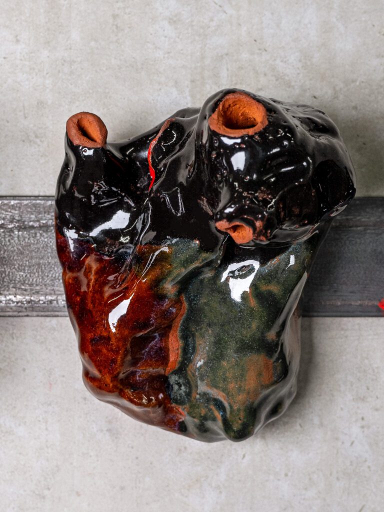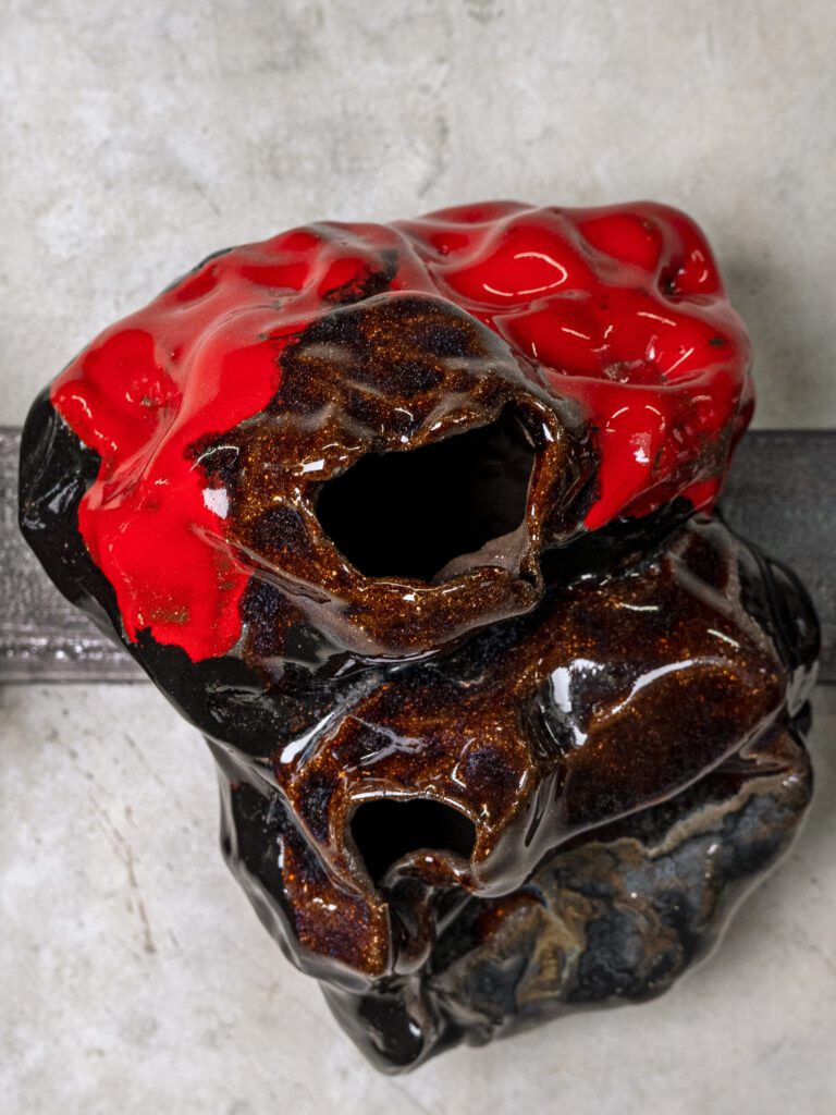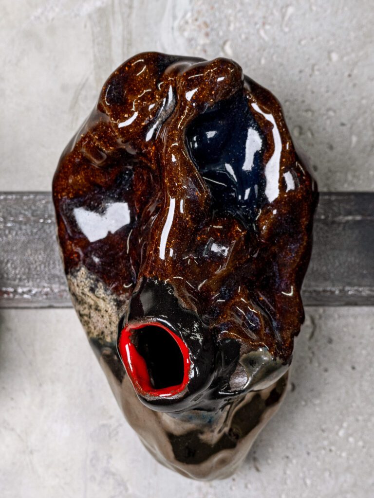 Ceramic with metalic glaze, with magnets.