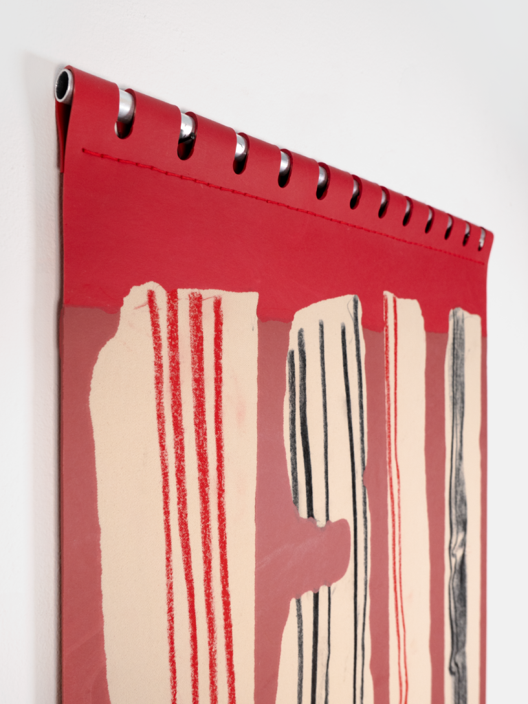 Charcoal and dry pastel drawing cast in silicone, with aluminium tube.